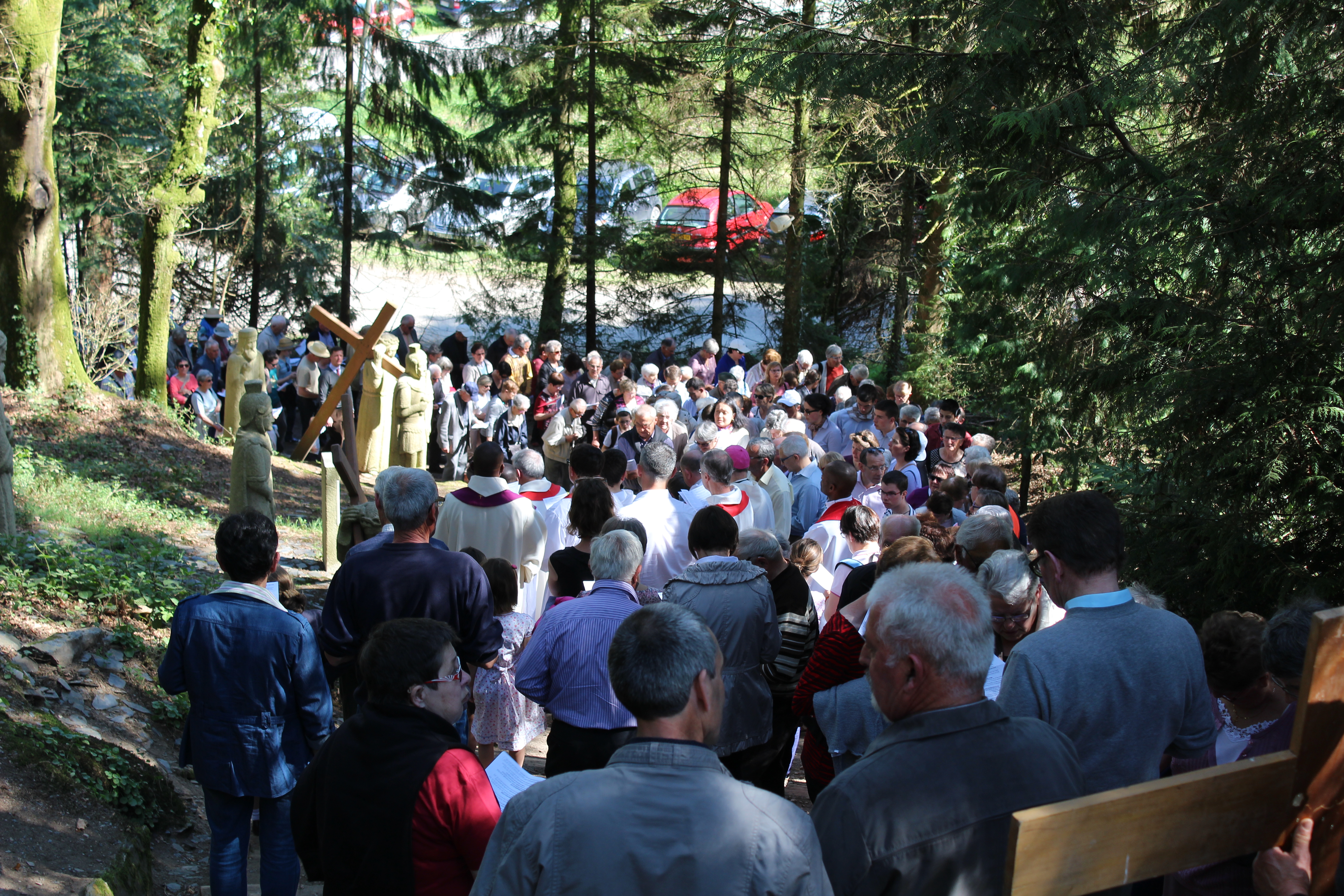 Sous un grand soleil, ils ont pérégriné de station en station, jusqu’à la 15ème station, commémorant et méditant la passion du Christ, mort par amour pour nous dans de grandes souffrances. Ils ont pu ainsi mieux approcher le mystère du don de Dieu qui nous sauve, en nous faisant le don de la vie de Son Fils bien-aimé.