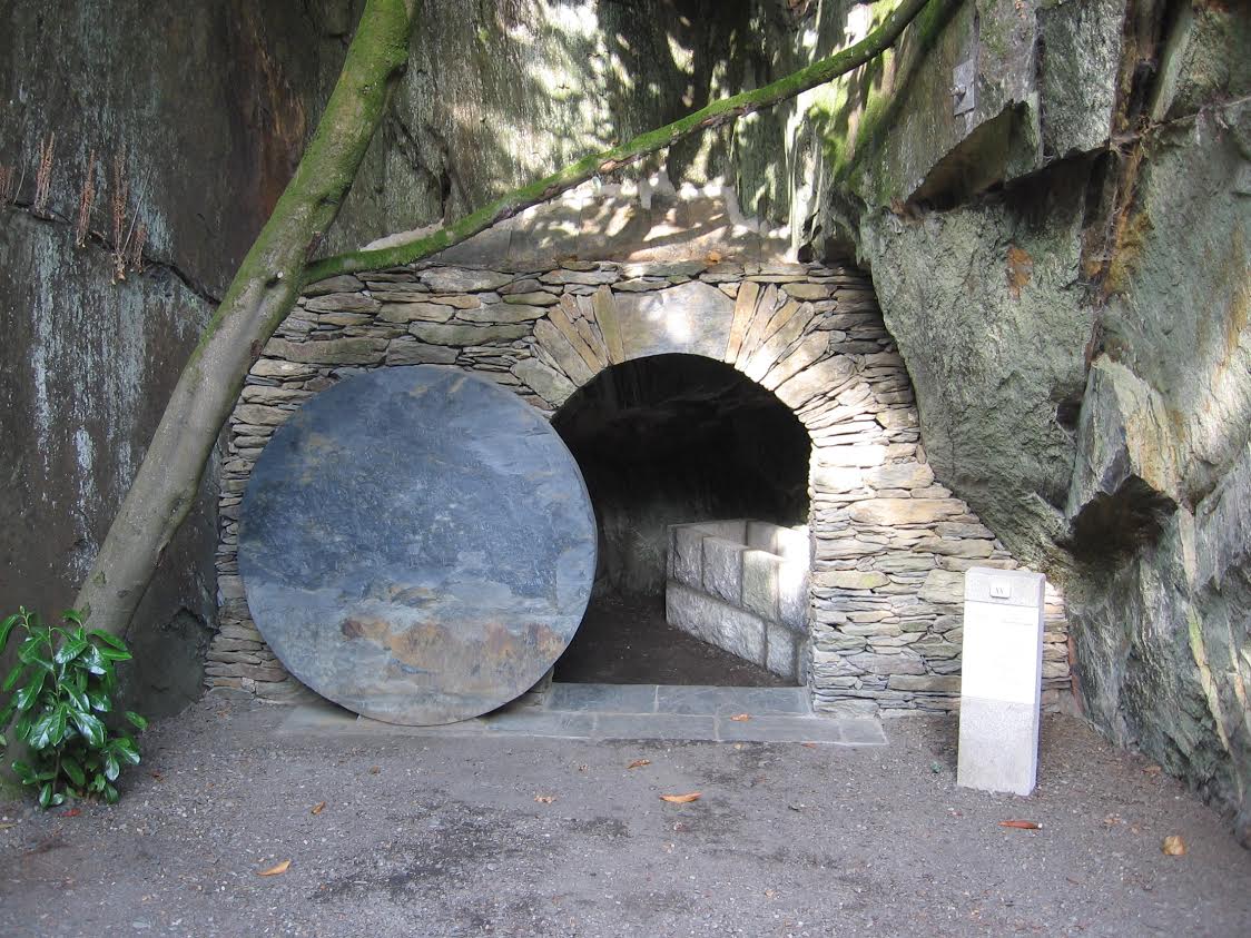 En 1947, l’abbé Ernest Binard est nommé recteur de la paroisse de Callac (il y restera jusqu’en 1974). En se promenant un jour il découvre un rocher au bord de la route, à la place d’une vieille carrière, qui lui fait étrangement penser à la grotte de Lourdes. Il a alors une idée très nette et forte : en faire une grotte semblable à celle de Lourdes. L’idée acquise auprès des paroissiens, commencent alors les travaux d’aménagement du rocher, entièrement à la main, à coup de burins. Edouard Etienne, président de l’association du chemin de croix, témoigne : « mon grand’père Aristide Etienne était parmi les paroissiens. Ils ont creusé à la main l’emplacement de la statue de la Vierge. Il leur aura fallu 15 jours pour la terminer. Elle a été fini le 1er mai 1949. » En voyant les rochers épars aux alentours de la grotte, le père Binard a une autre idée : faire de ce lieu un chemin de croix, parmi les rochers. Qu’à cela ne tienne ! Aidé du diocèse, ils achètent le terrain à 3 propriétaires différents, et tracent le chemin à coup de pioche. Des croix en bois seront placées à chaque emplacement de station. Mais le bois, ça pourrit. Alors l’abbé Binard a l’idée de faire appel à des sculpteurs : le granit aura raison des intempéries ! 3 sculpteurs de Callac et un de Louvigné-du-Désert en Ille-et-Vilaine. C’est de ce dernier que vient la station N°12, seule du chemin de croix en granit bleu de Louvigné. Débutées en 1954, les sculptures seront terminées et bénies en 1958 par Monseigneur Bellec.