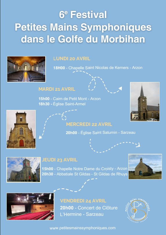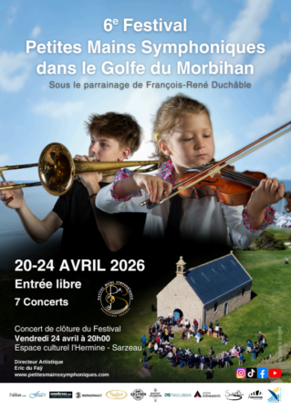 Jeudi 23 Avril à 20h30 concert des Petites Mains Symphoniques dans le cadre de leur 6ème festival en Bretagne. Cet orchestre composé d’une trentaine de jeunes âgés de 6 à 17 ans interpréteront des pièces du répertoire classique et sacré dont le programme sera donné sur place. Entrée libre.