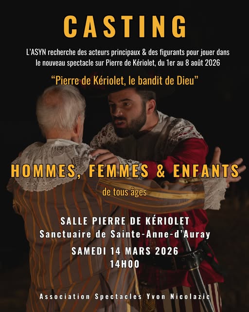 L’Association Spectacles Yvon Nicolazic prépare un nouveau spectacle historique sur la figure de Pierre de Keriolet, « le bandit de Dieu ». Participez au grand casting du 14 mars pour figurer dans cette toute nouvelle fresque !